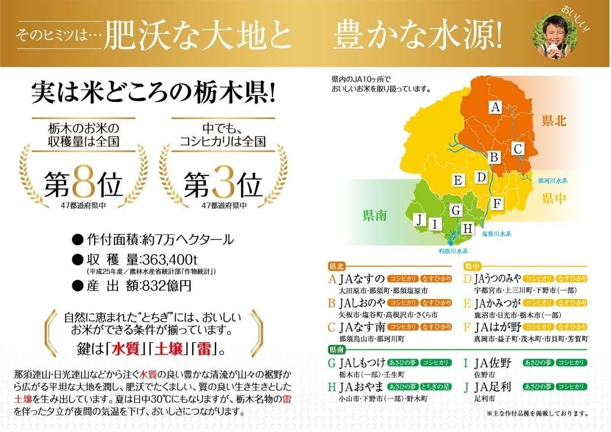米の食味ランキング最高評価「特A」受賞経験が多い「なすひかり」を父親にもち、自身も平成27年産で初めて「特A」を受賞しました。