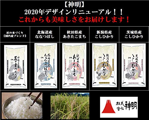 東北で最初の「コシヒカリ」系統の食味を持つ良質・良食味米品種。炊飯米は透明感、光沢、香り共に優秀で粘りが強く弾力に富んでいるという特徴がある。秋田は、西は日本海に面し対馬海流の恵で暖流である。東は南北に連なる奥羽山脈が「ヤマセ」をさえぎり、山越えした寒風はフェーン風に変わって、8~10℃気温が高くなる。また、大部分の田んぼは盆地の中にあって昼と夜の温度差が大きく稲の育ちと実りに好適な条件を揃えている。あかふじ米は神明が全精力を注ぎ込んで造っているブレンド精米で、独自の技術と経験に基づいてブレンドすることにより、年間を通じて安定した品質を保つことができると考えております。