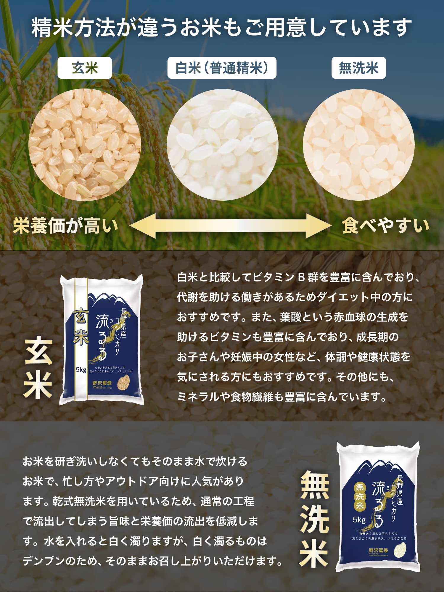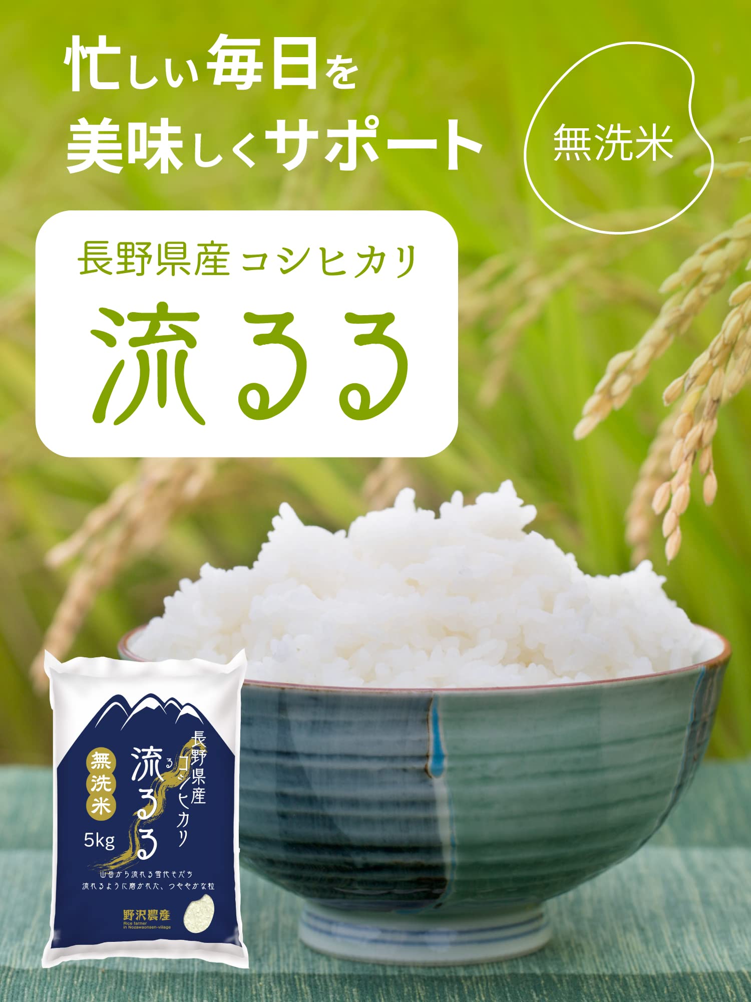 野沢農産 令和6年産 長野県産 コシヒカリ (5kg, 無洗米)