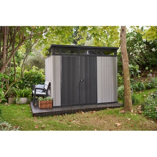 L’abri Cortina 9 x 7 est moderne à tous points de vue. Avec son toit incliné surplombant une bande de fenêtres, il arbore un design élégant et contemporain qui vous permettra de ranger vos affaires avec style. Ses parois à double paroi sont fabriquées en Evotech, notre matériau composite innovant qui offre l’esthétique du bois avec les avantages de la résine. Extrêmement durable, cet abri est totalement résistant aux intempéries et ne nécessite aucun entretien : il ne rouille pas, ne pourrit pas et ne s’écaille pas. Ajoutez à cela des renforts en acier pour plus de solidité, des portes doubles verrouillables pour plus de sécurité et de commodité (serrure non incluse), une ventilation bilatérale, un toit pouvant supporter une charge de neige allant jusqu’à 150 kg et un plancher robuste pouvant supporter une tondeuse autoportée, et vous obtenez un abri performant et élégant.