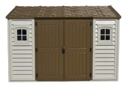 - Solution polyvalente avec un look élégant – Combinant une bonne performance avec un beau look en ivoire et marron, cet abri de rangement horizontal sera beau dans votre jardin.