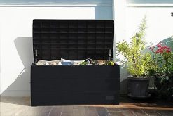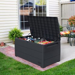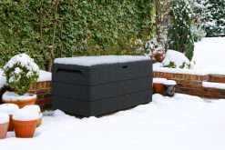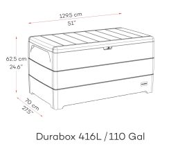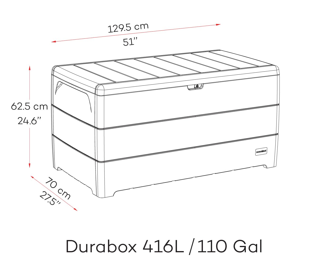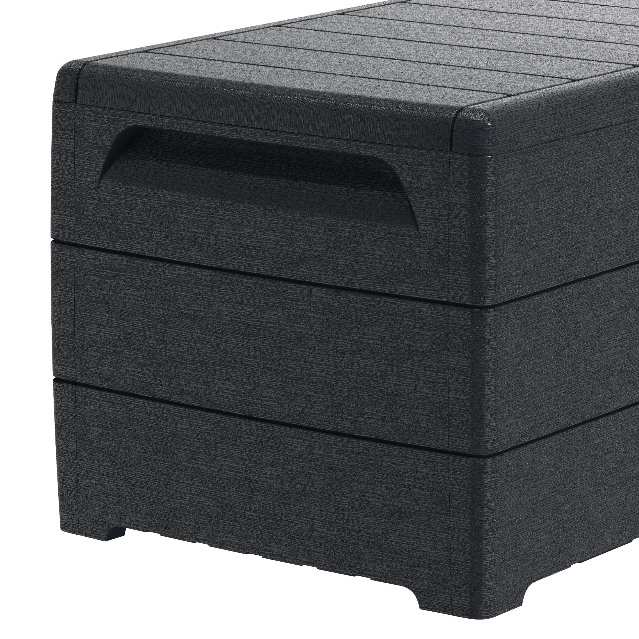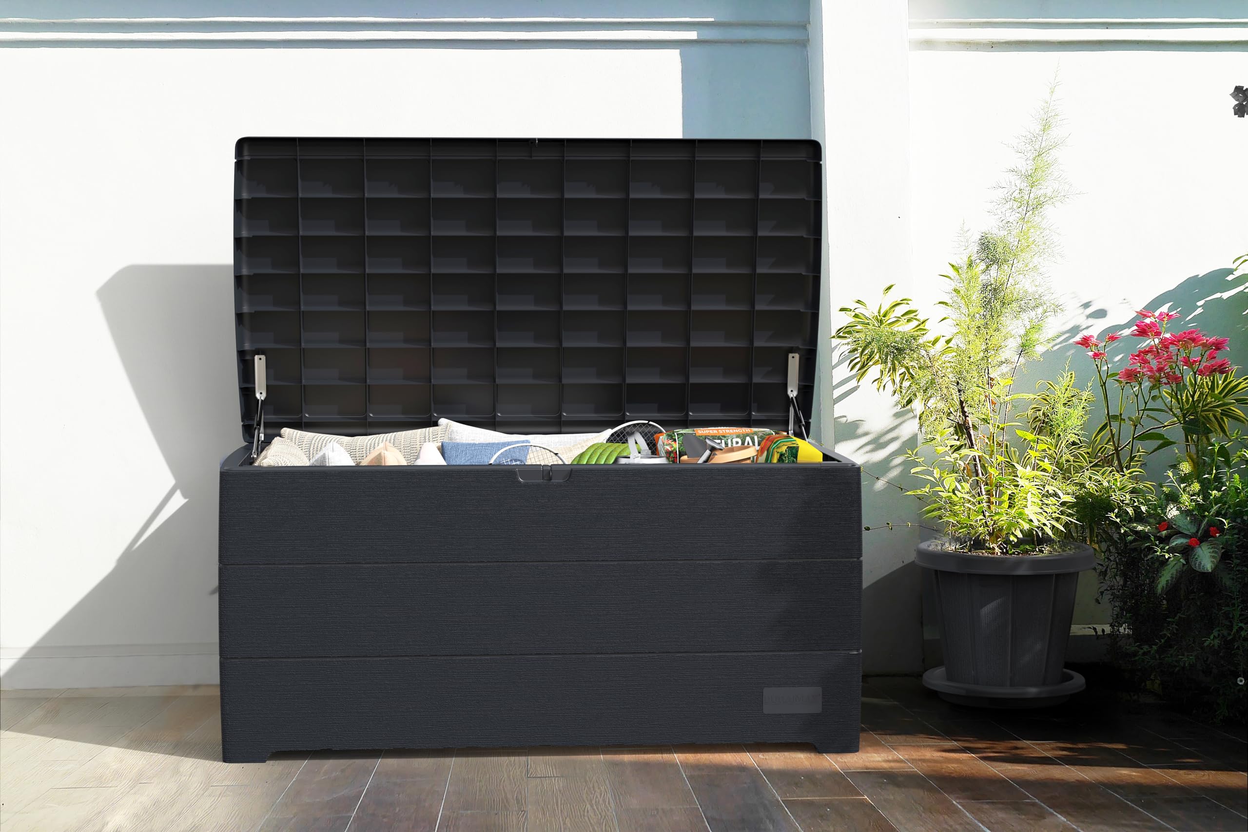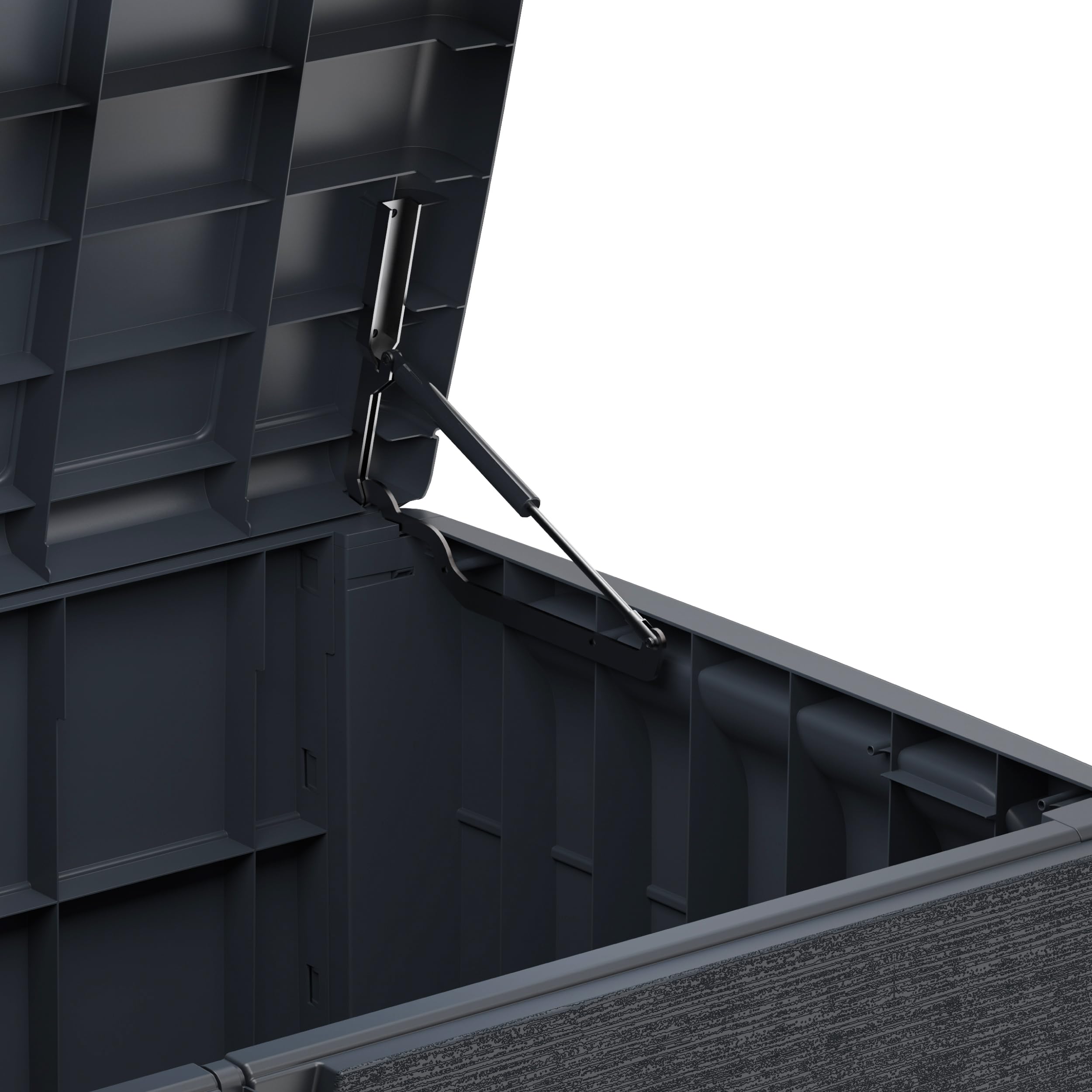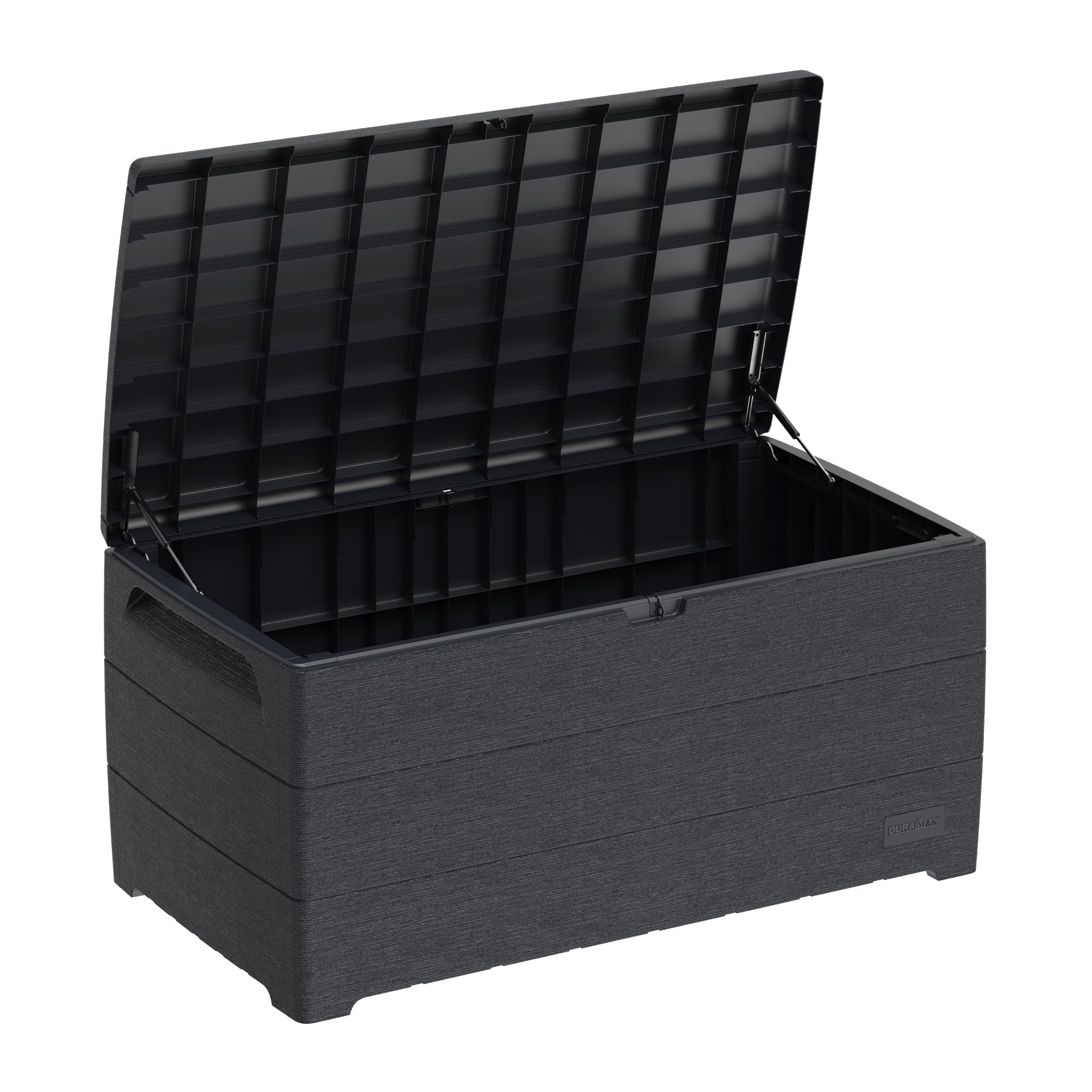 Cedargrain Durabox 416 Litre/ 110 Gallon coffre de rangement de jardin en plastique pour terrasse, coffre à coussins en plastique avec cylindre hydraulique, boîte de patio, Gris foncé