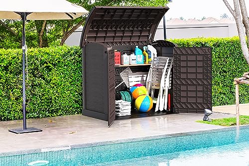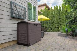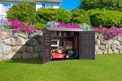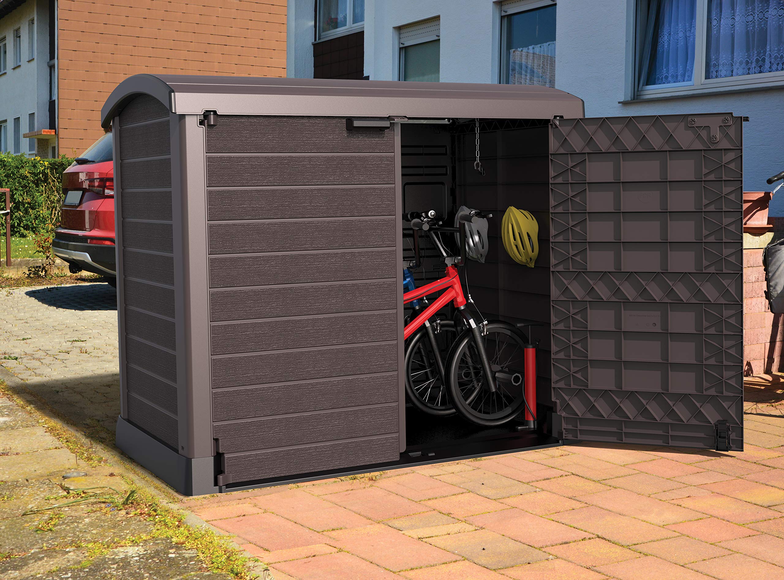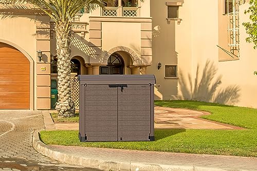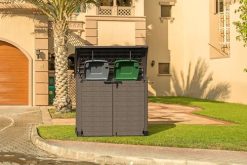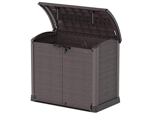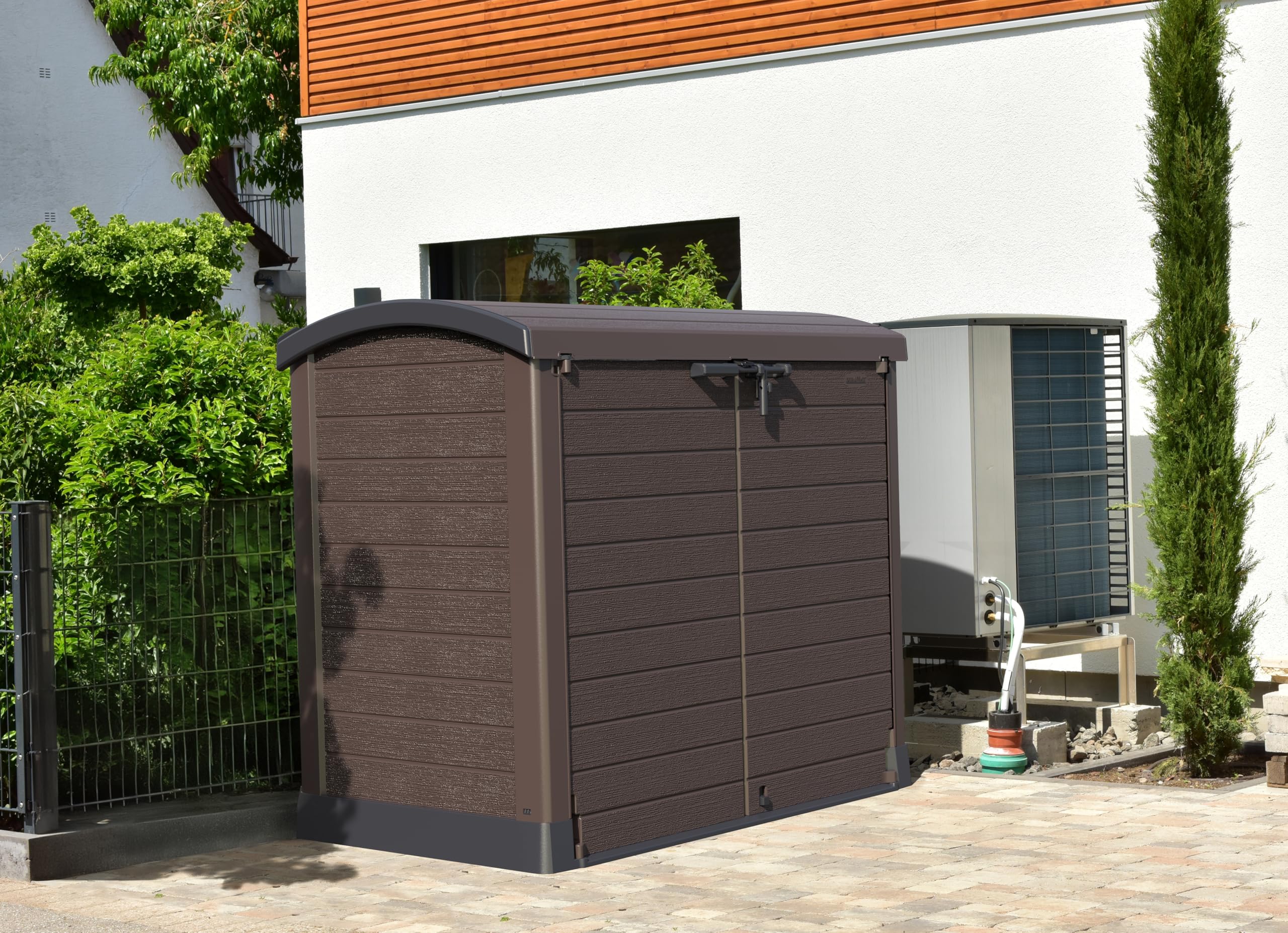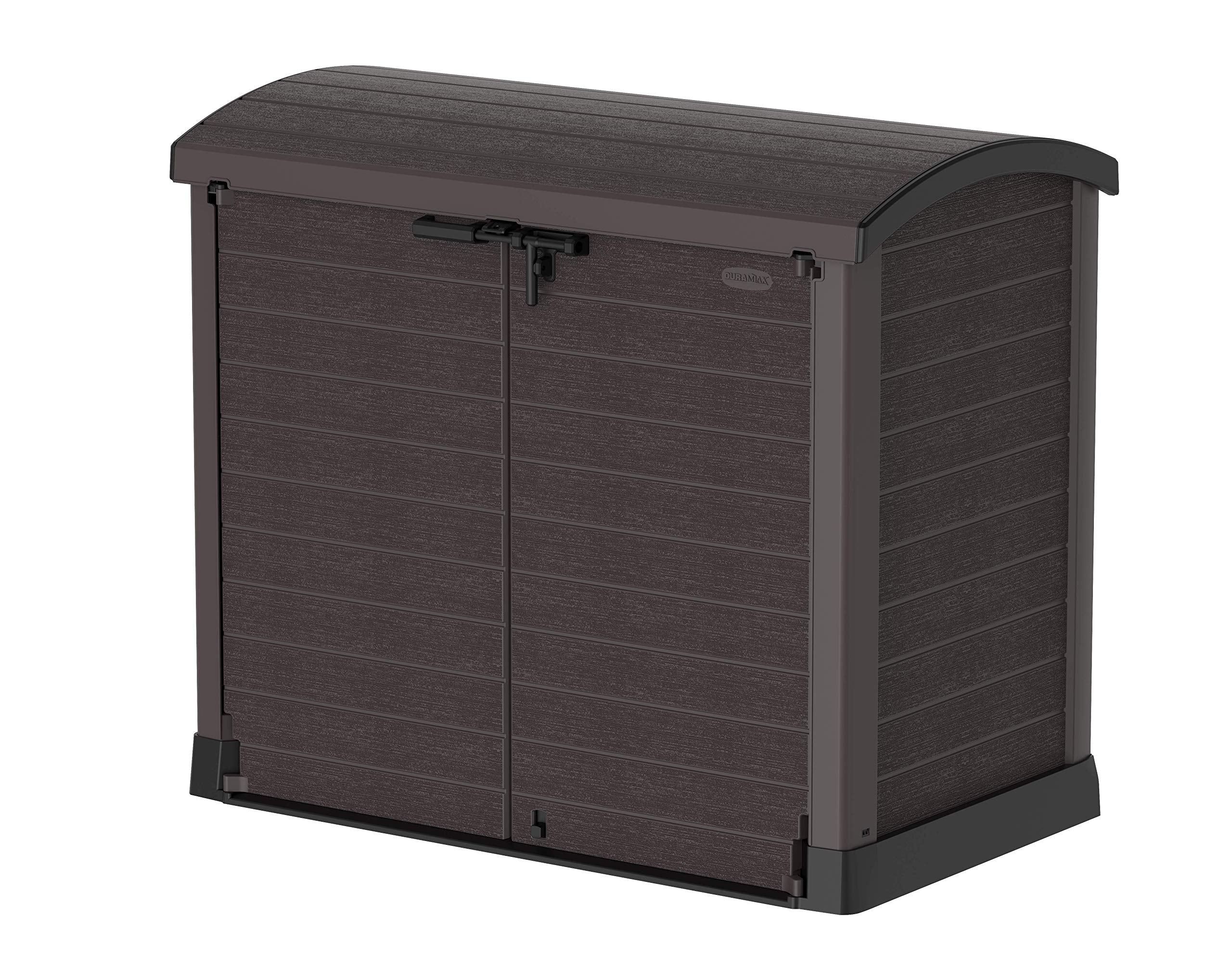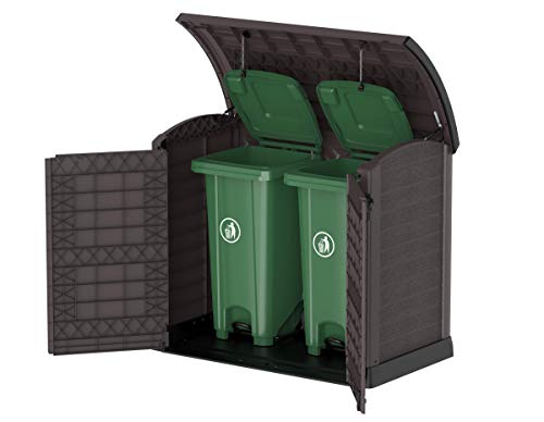 Cedargrain StoreAway 1200L Abri de jardin en plastique / couvercle arc, Abri pour poubelles, Cache poubelles, Coffre de poubelle, Idéal pour les 2x 240L poubelles, 145x85x125 cm, Marron
