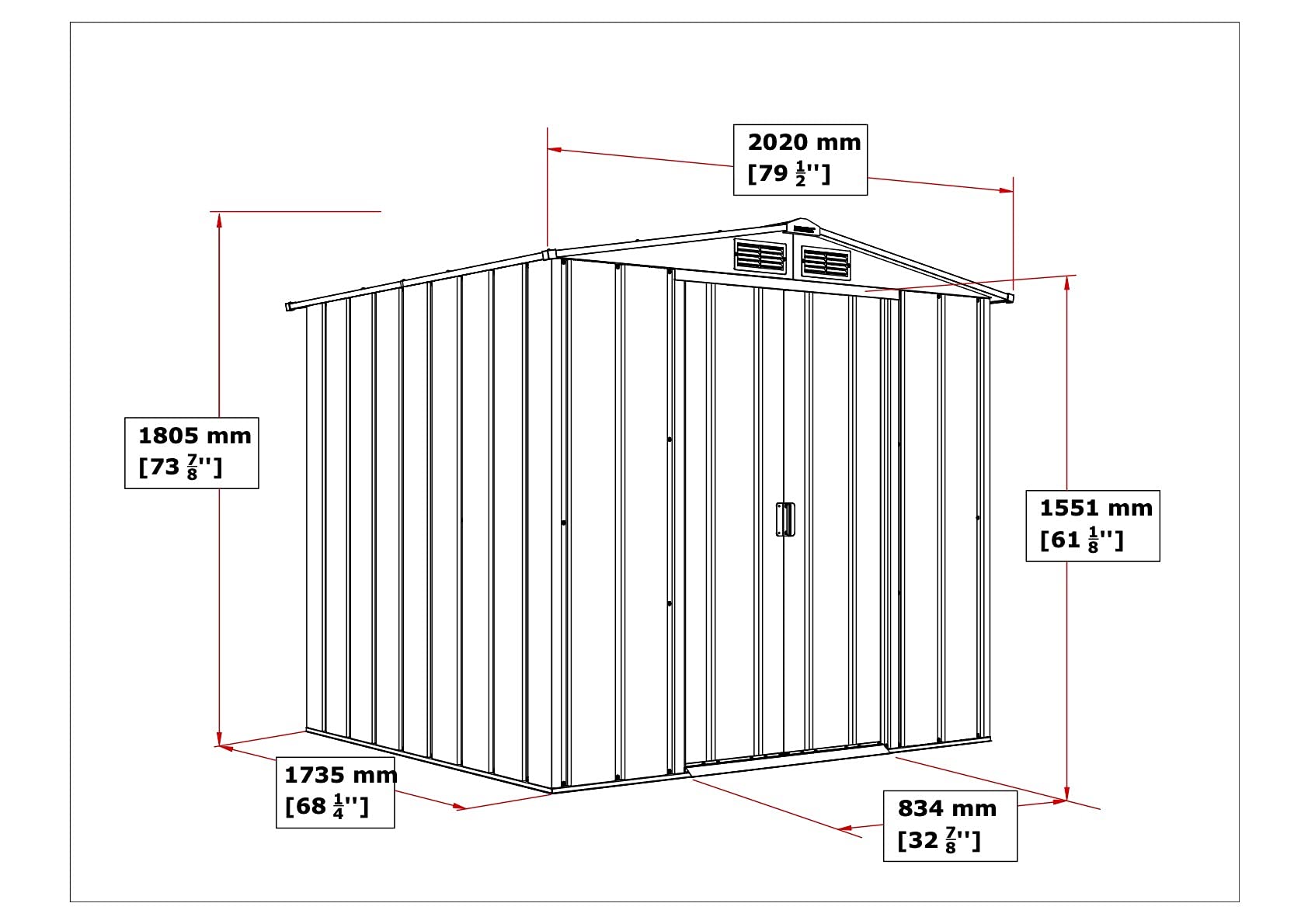 - Cet abri de jardin a la taille idéale pour garder vos outils de jardinage, vélos, barbecue, équipement d’exercice, accessoires de réparation automobile et autres effets personnels au sec et en sécurité; Dimensions extérieures (LxlxH): 202 x 182.2 x 180.5 cm