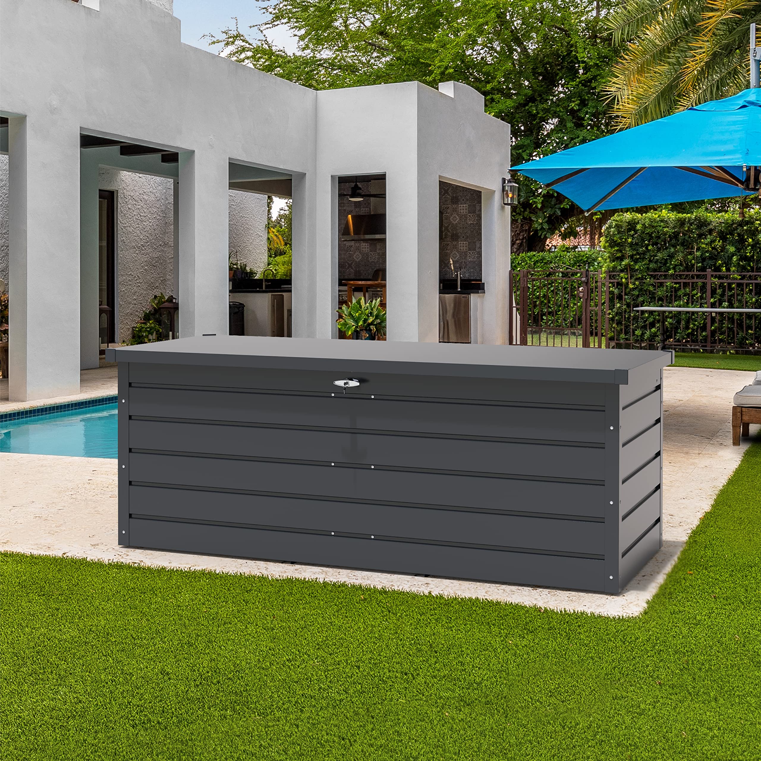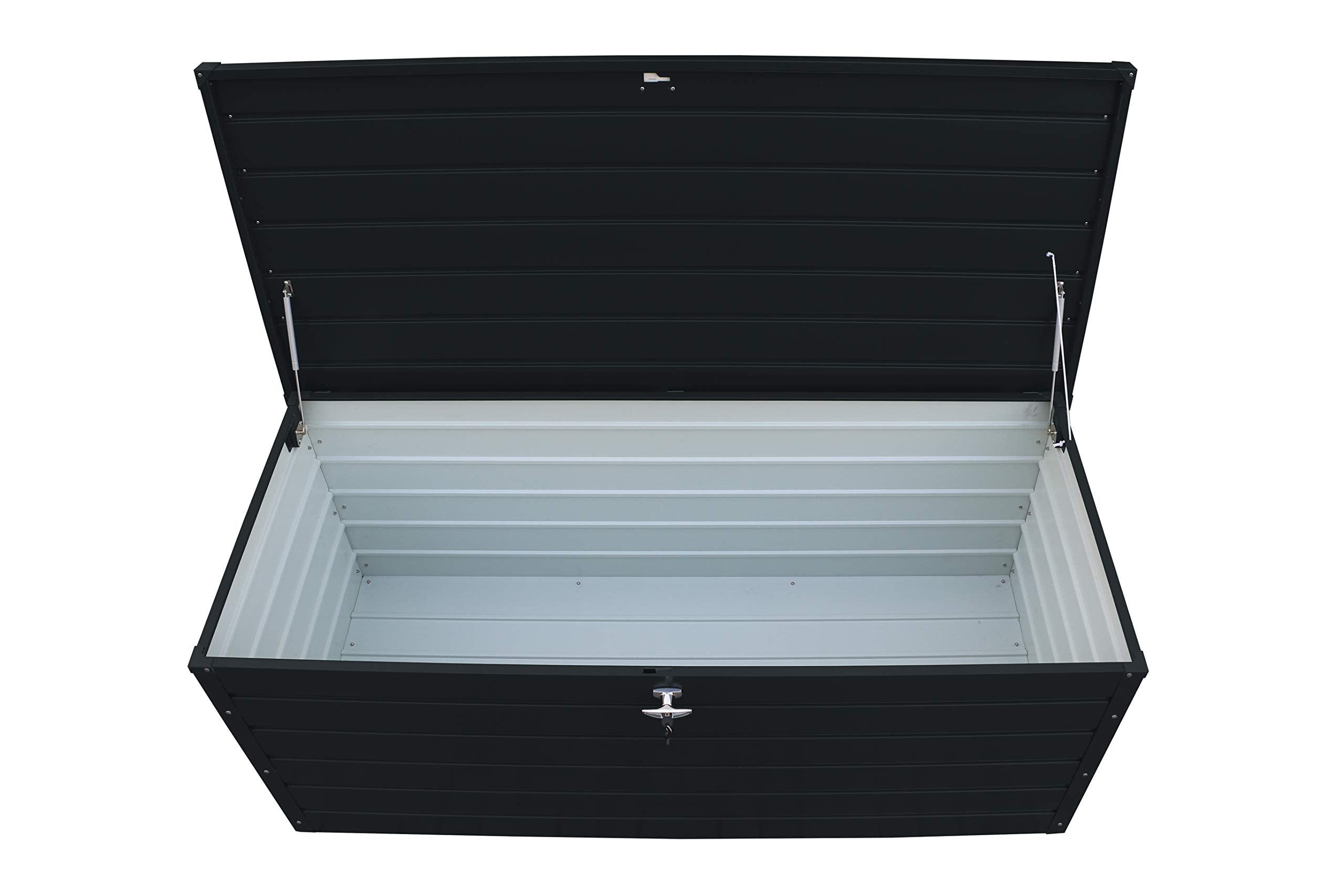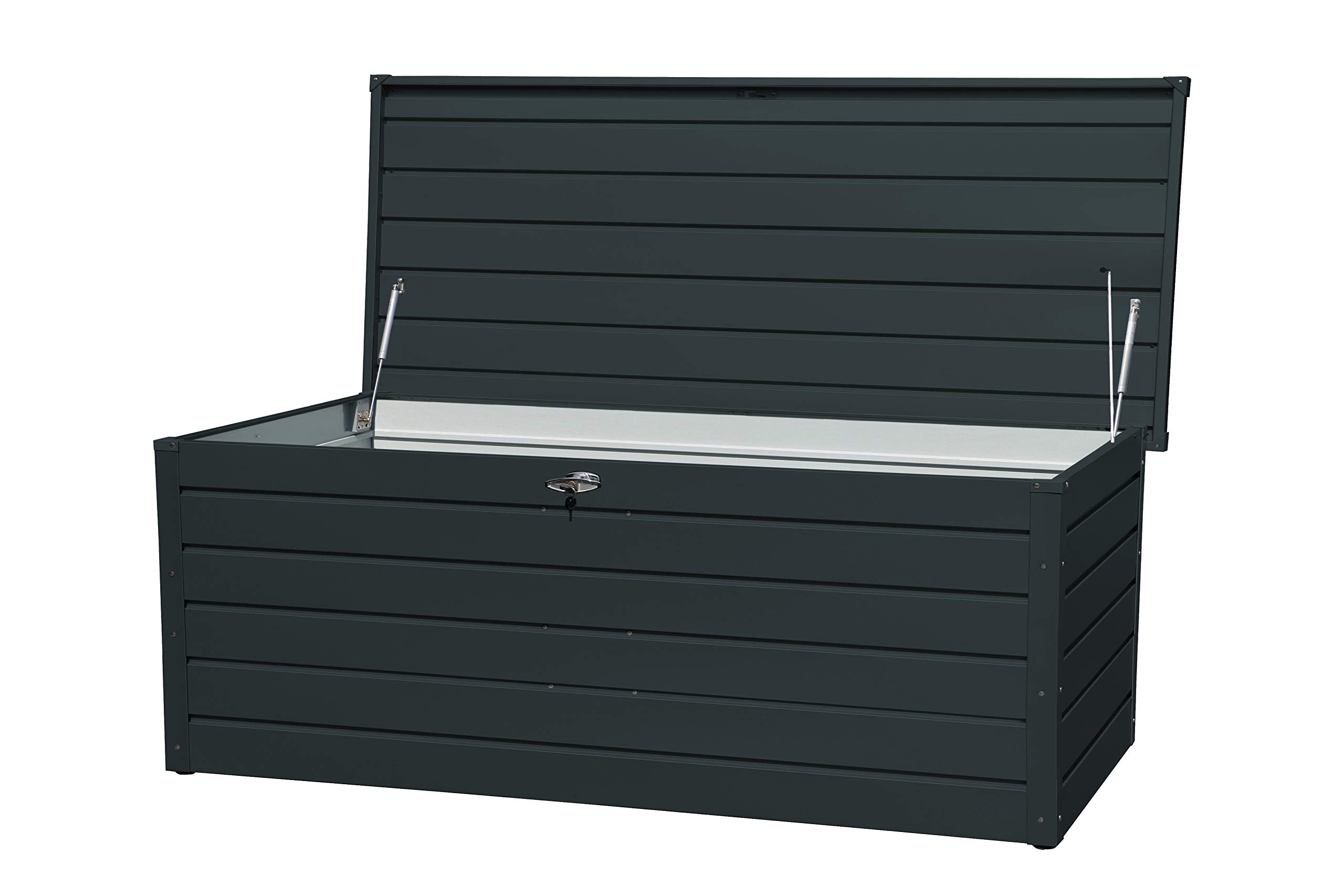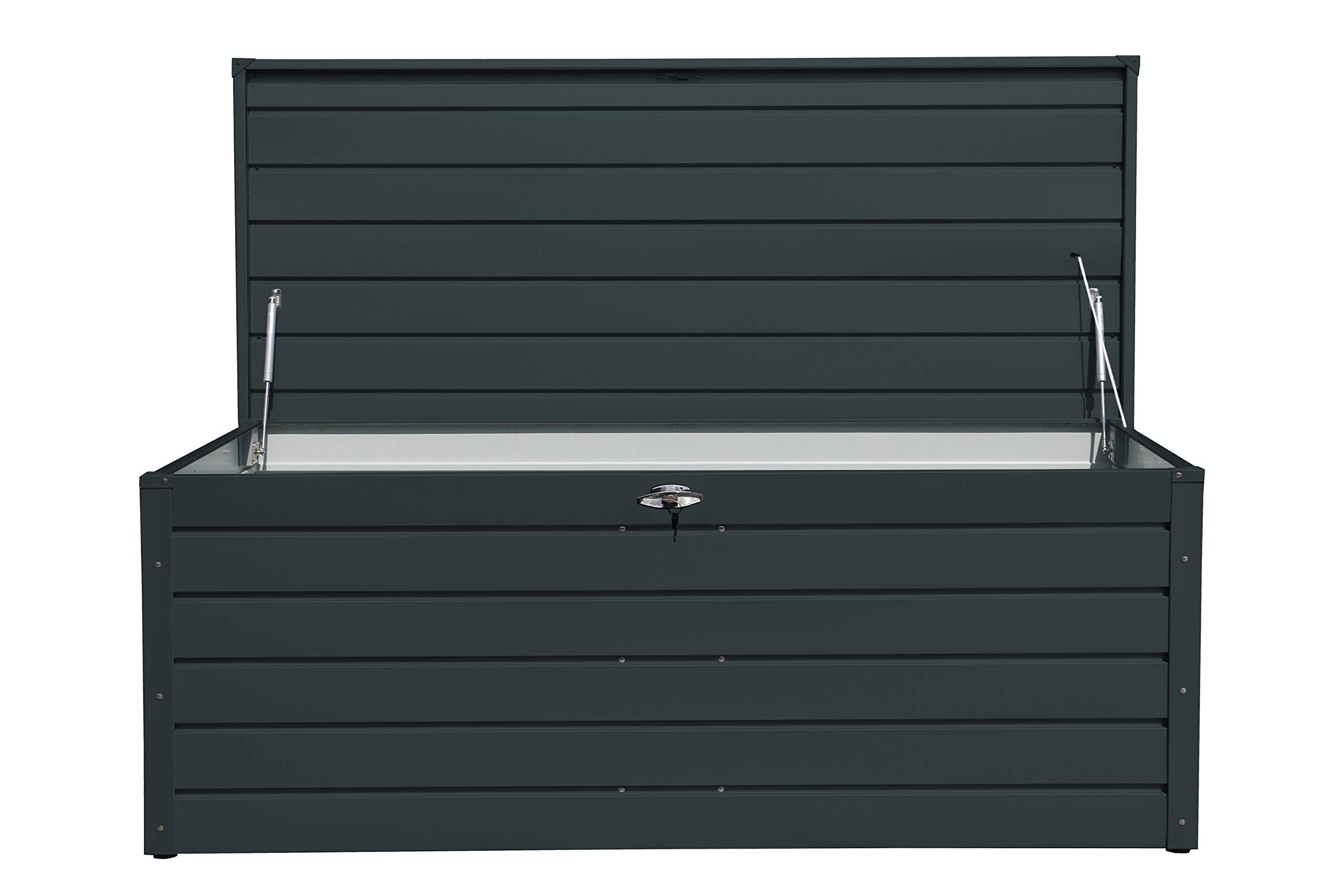 - Protégez toute l’année vos coussins de meubles, vos accessoires d’extérieur et bien plus encore stockés en toute sécurité.; Dimensions extérieures (LxlxH): 200 x 86.5 x 75.9 cm; Capacité: 1043L/ 276 Gallons