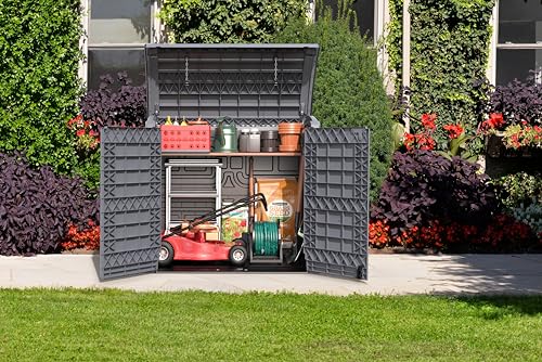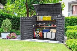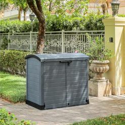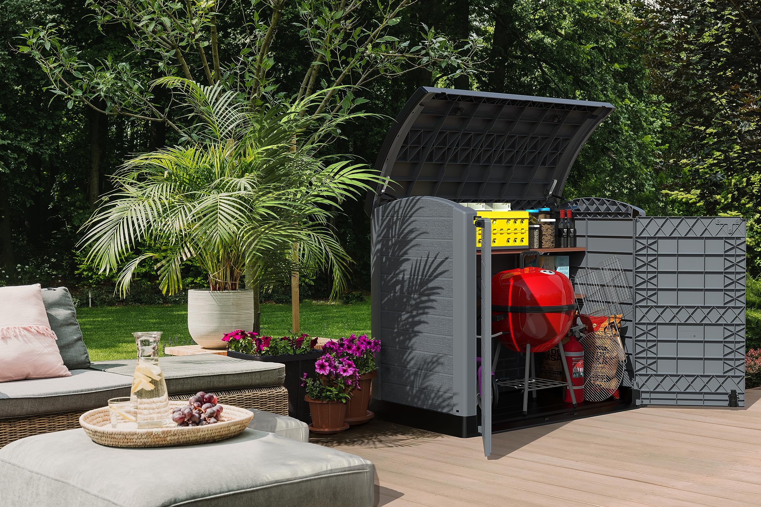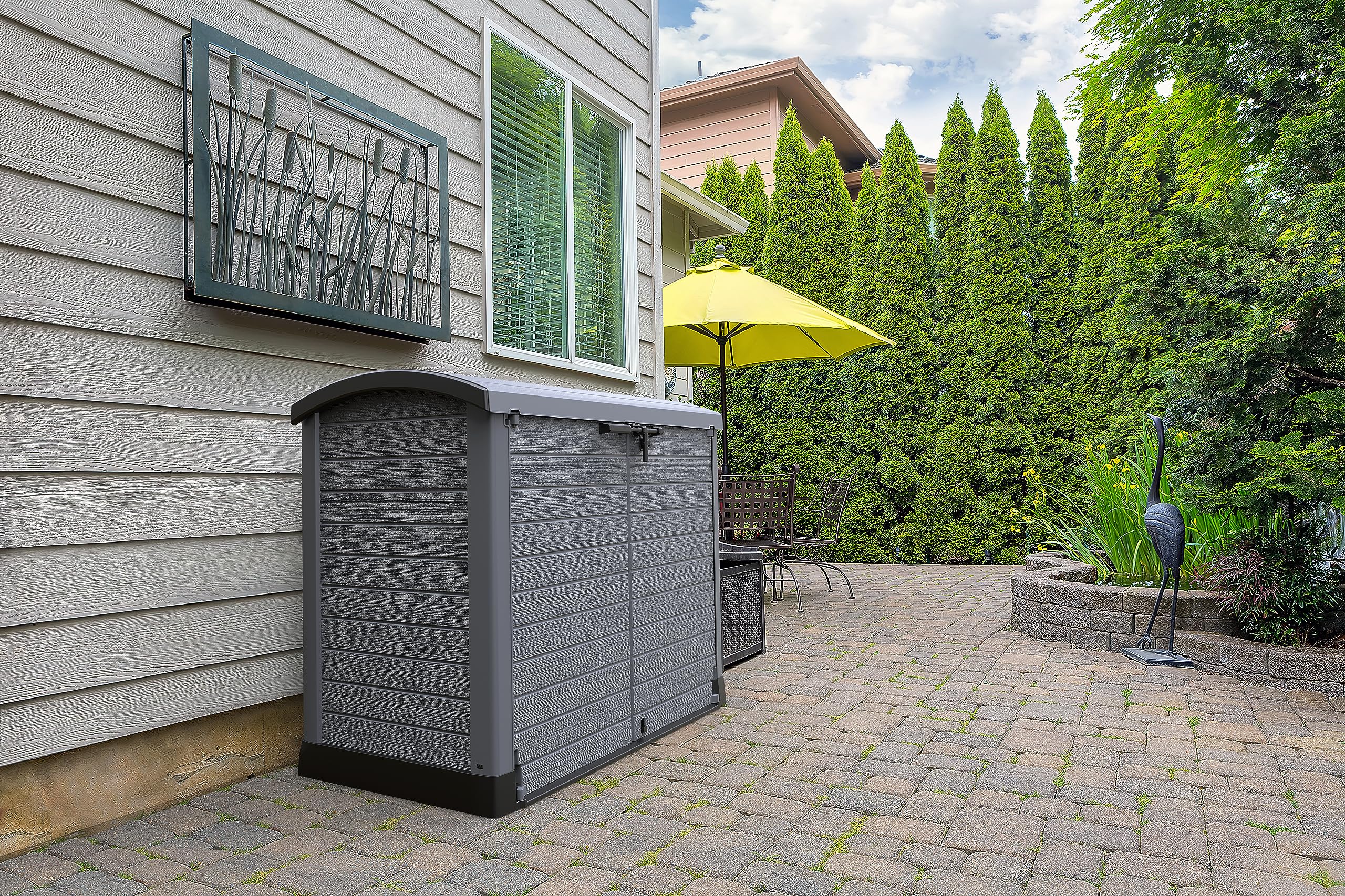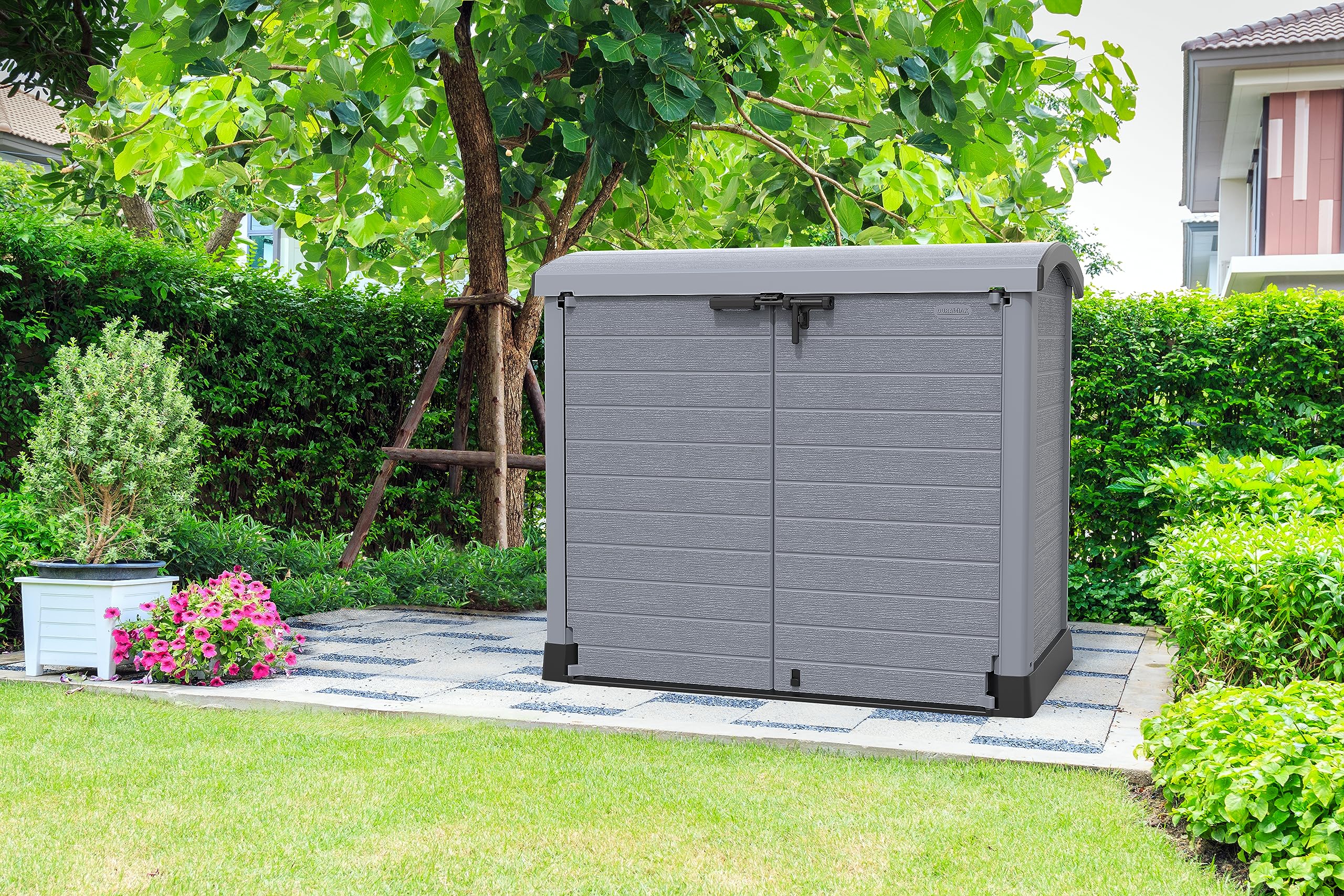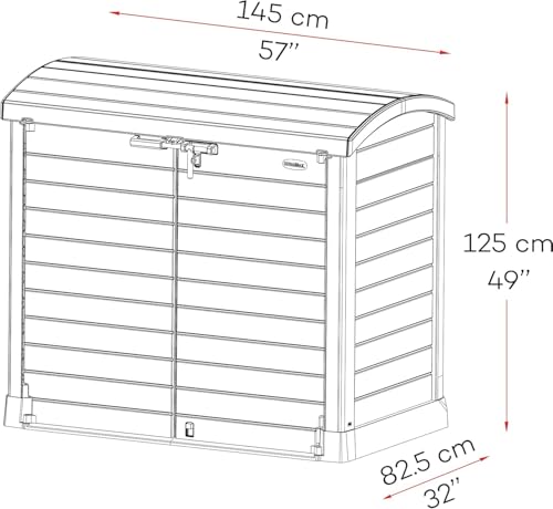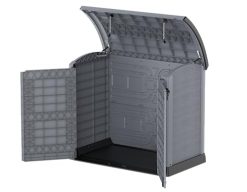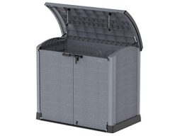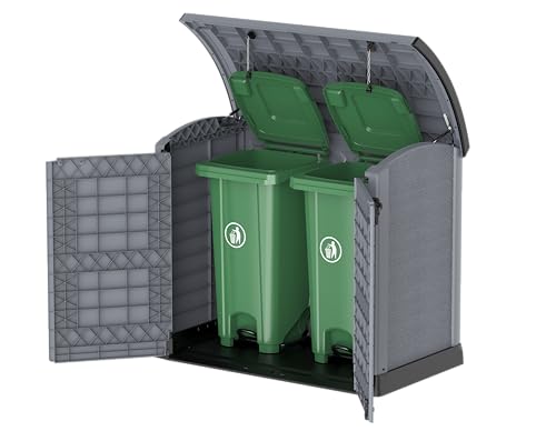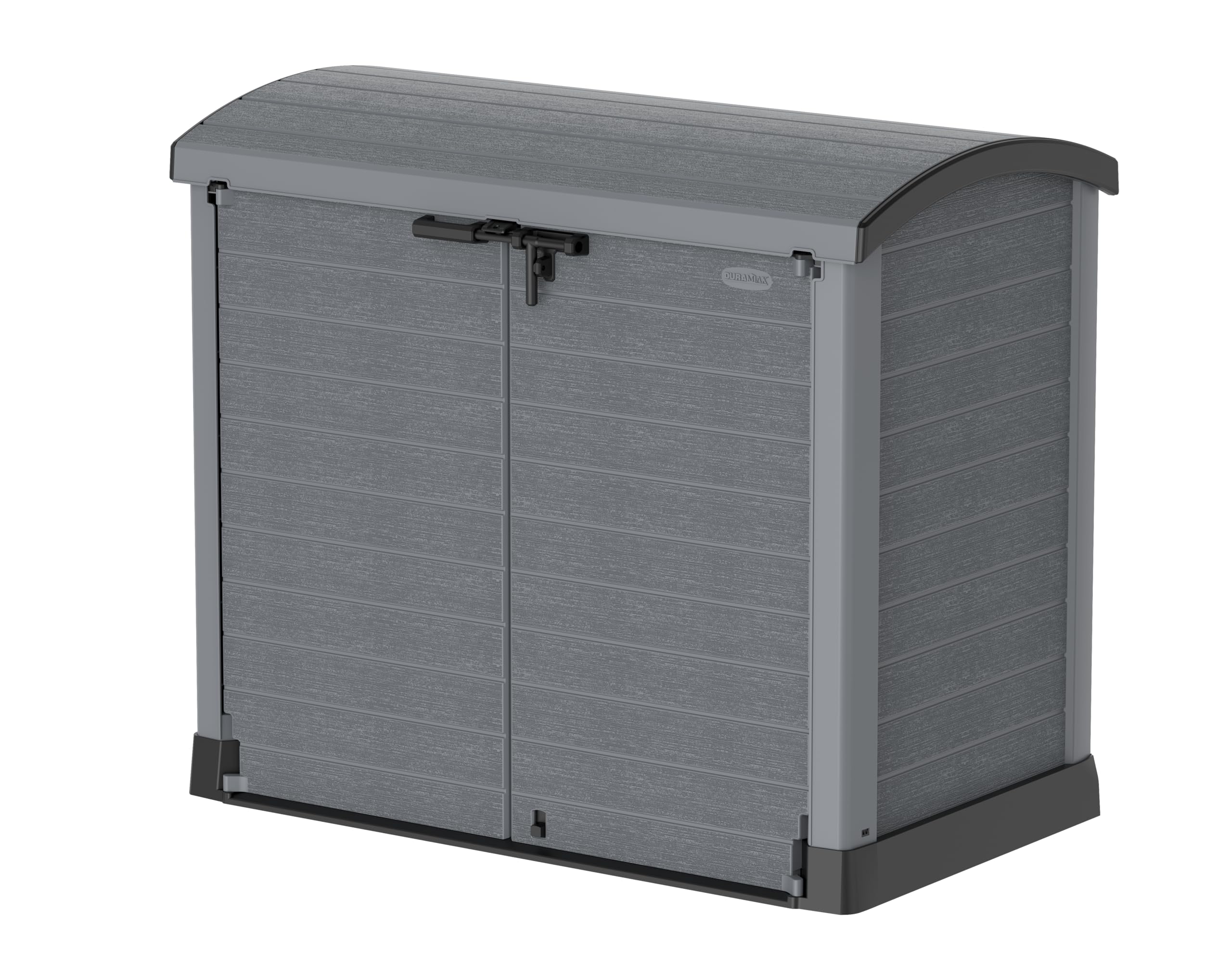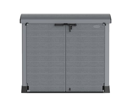 StoreAway 1200L Plastic Garden Shed/ Arc Lid, Outdoor Storage Shed, Wheelie Bin Hideaways, Wheelie bin box, Durable Construction, Ideal for Bikes, BBQs & 2x 240L Bins, 145x85x125 cm, Grey