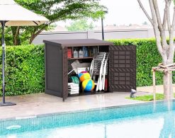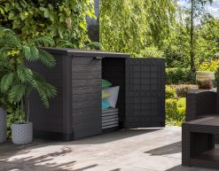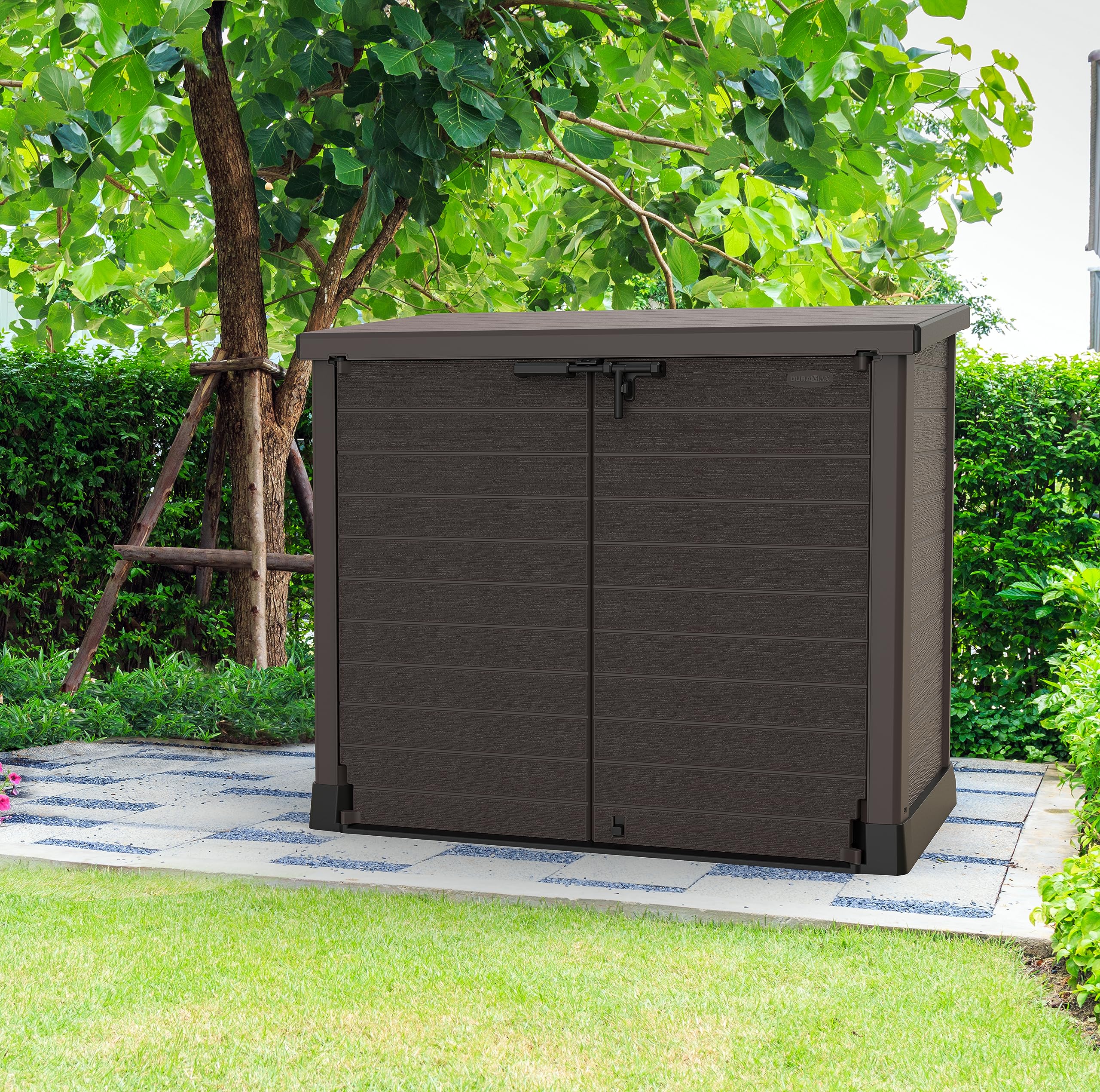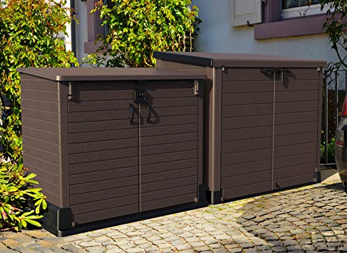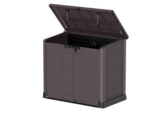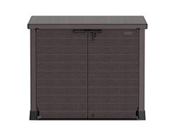- L’abri de jardin StoreAway a été conçu pour garantir un grand espace de stockage pour les accessoires d’extérieur; Fabriqué en résine de polypropylène durable et résistant aux intempéries
