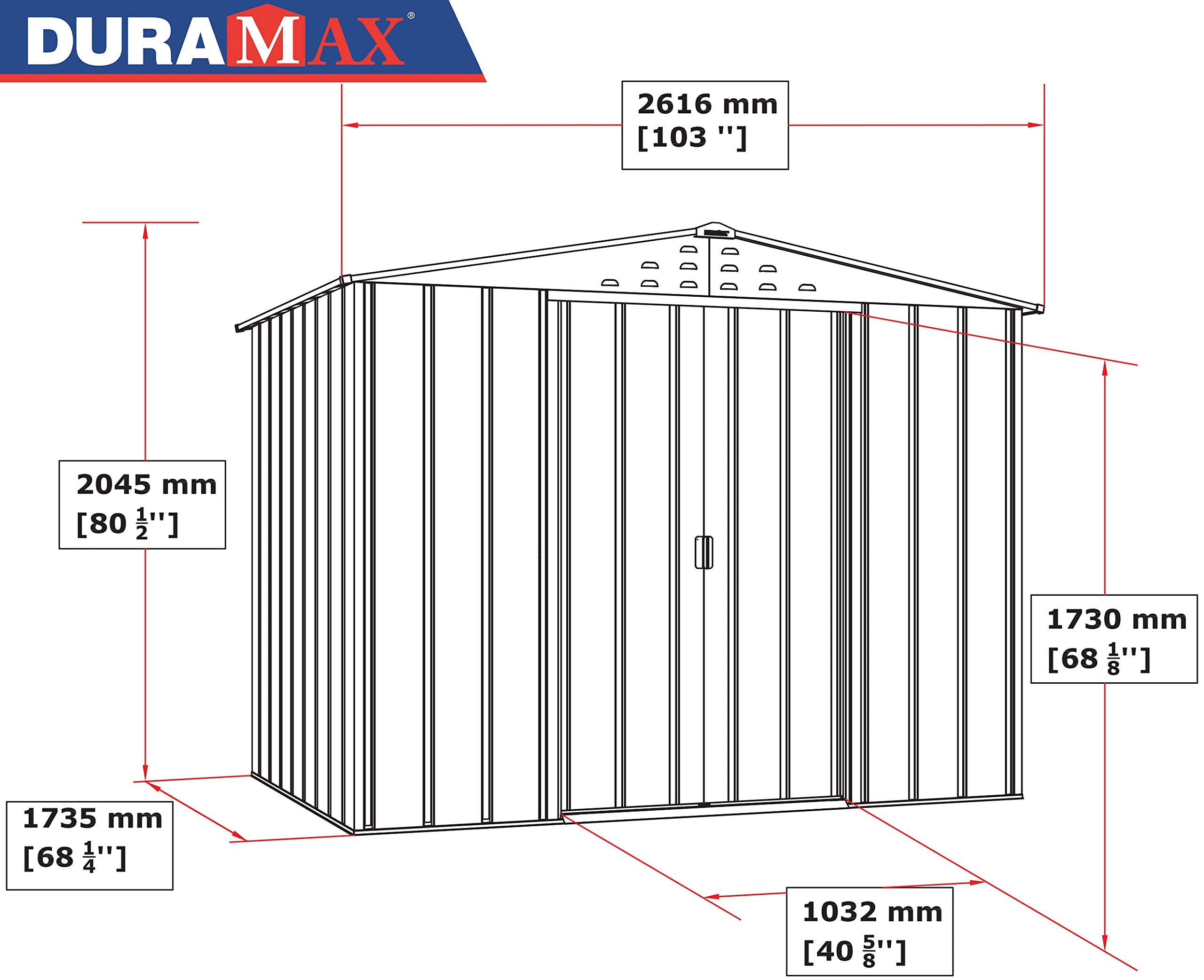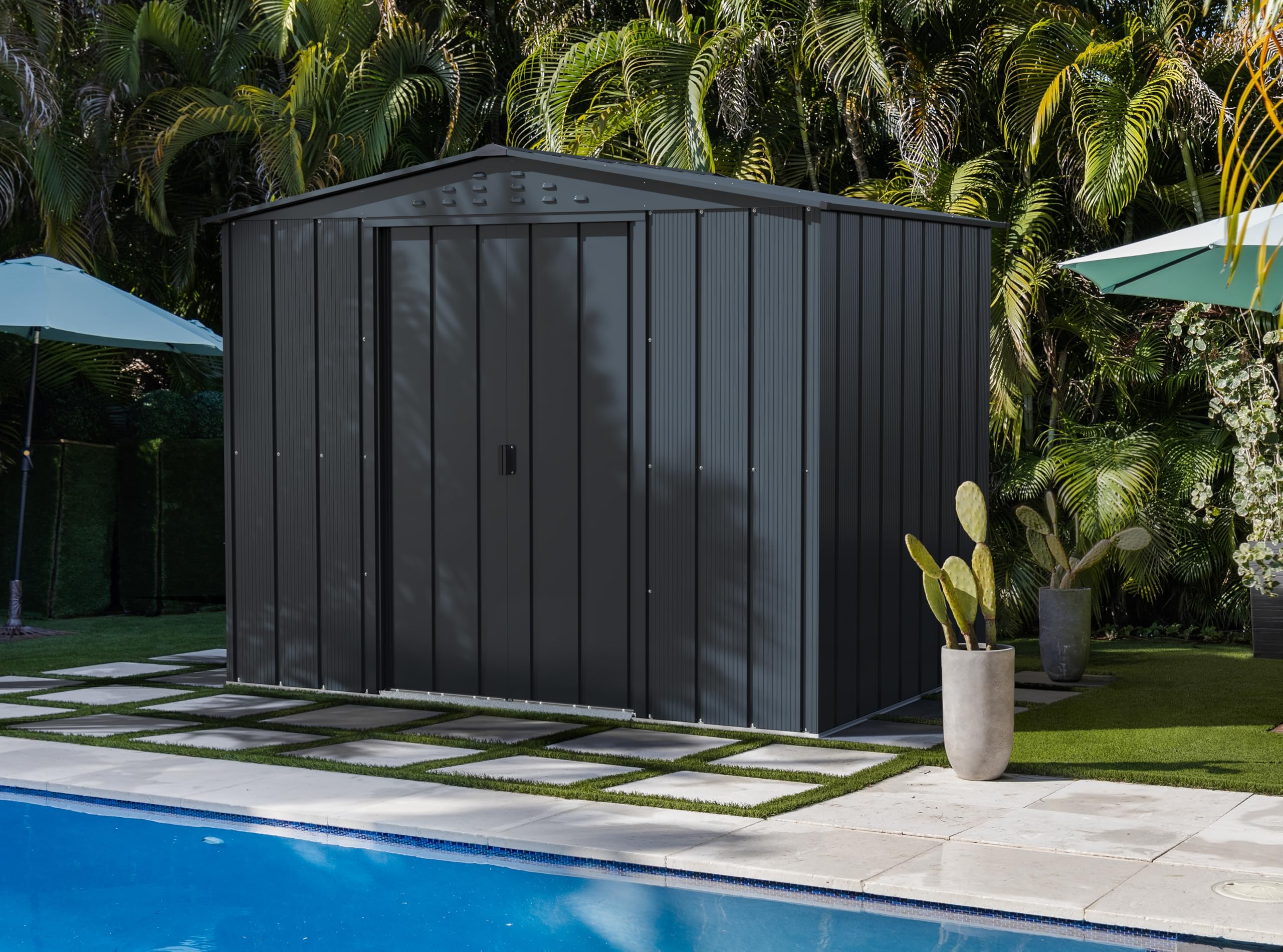 TOP Shed 8 x 6 (4.37 m²) Abri de jardin en métal, fabriqué en acier galvanisé, structure de toit renforcée, abri de jardin en métal sans entretien et résistant aux intempéries, Anthracite
