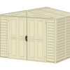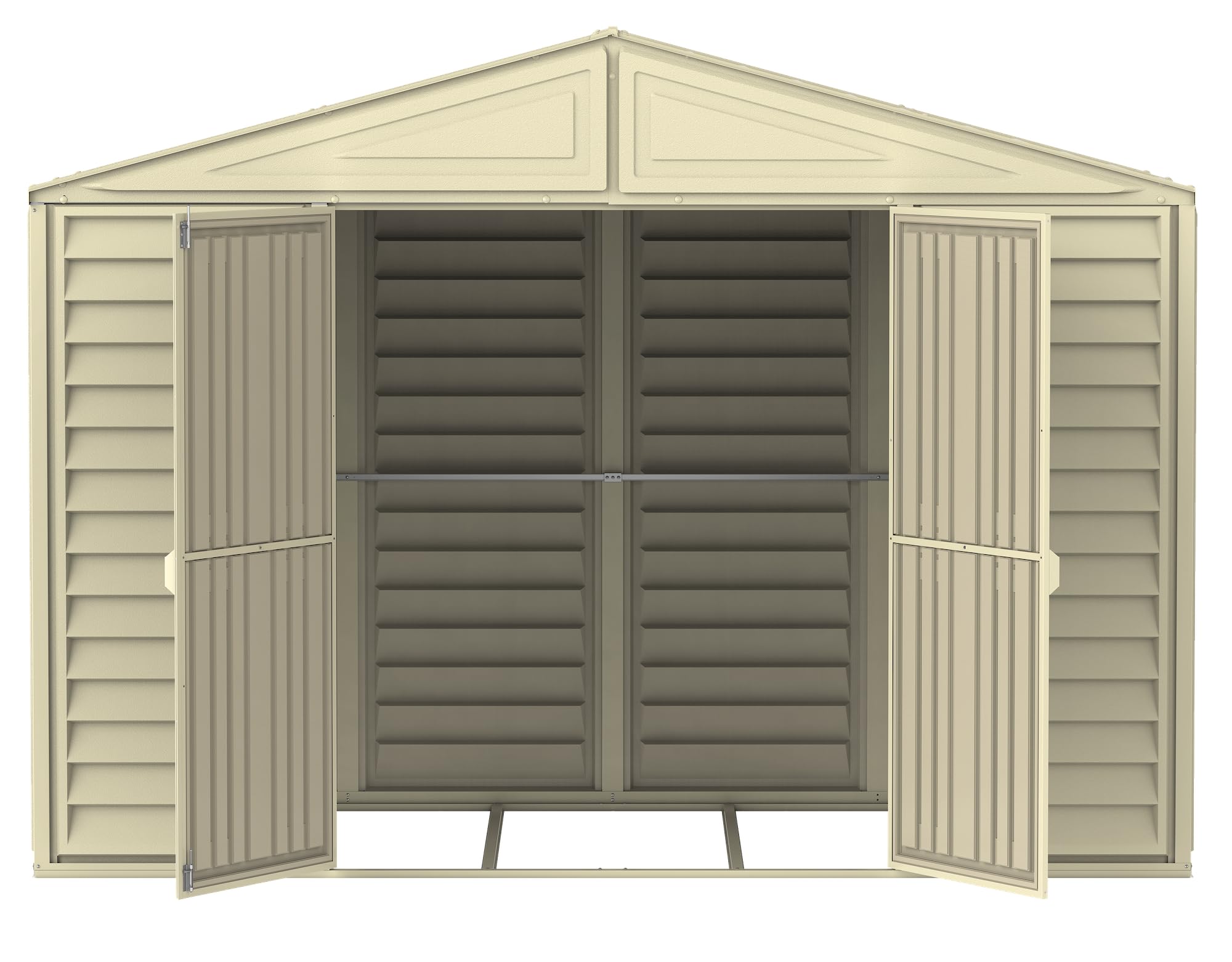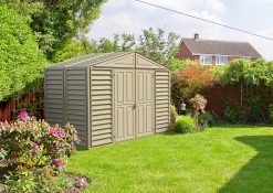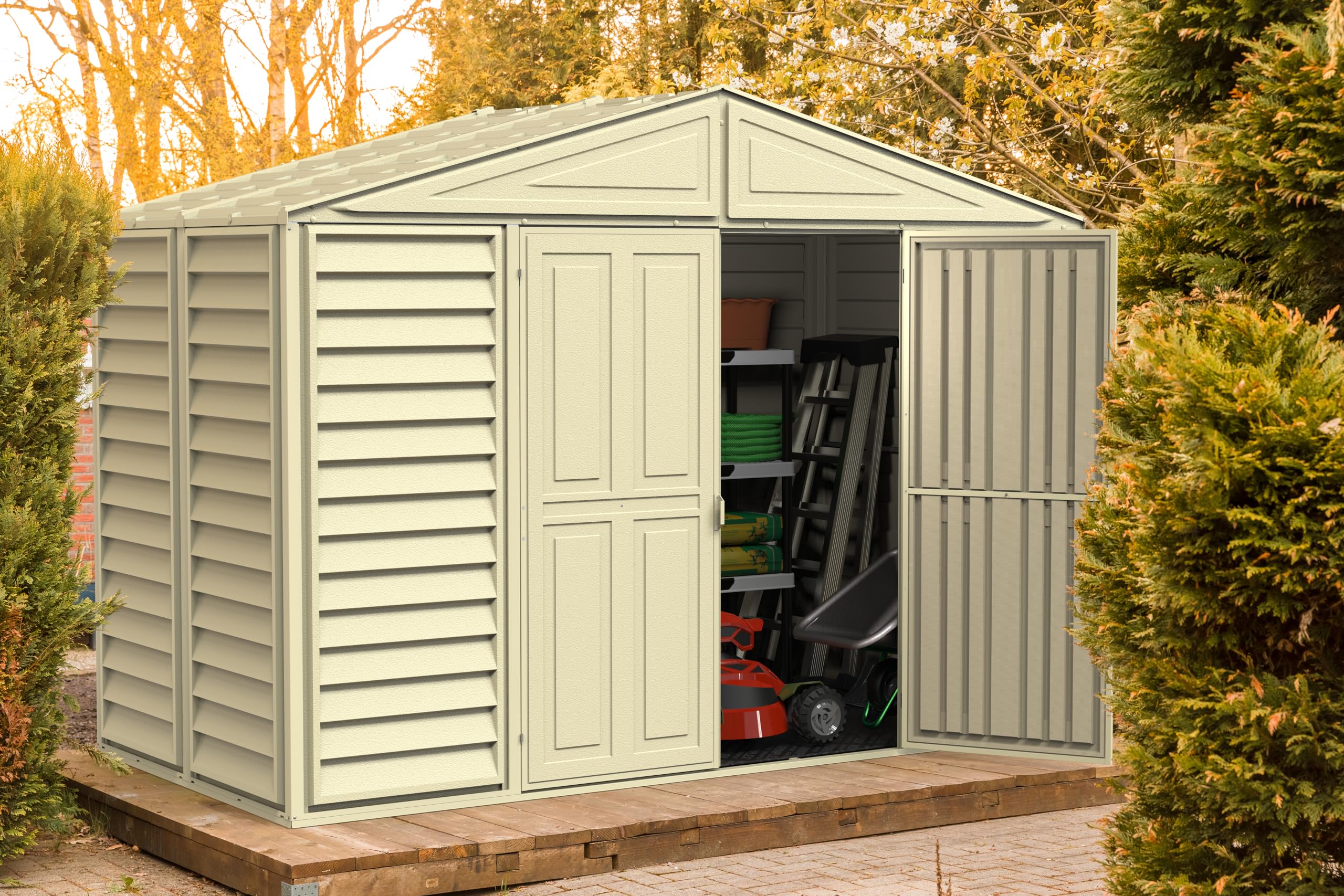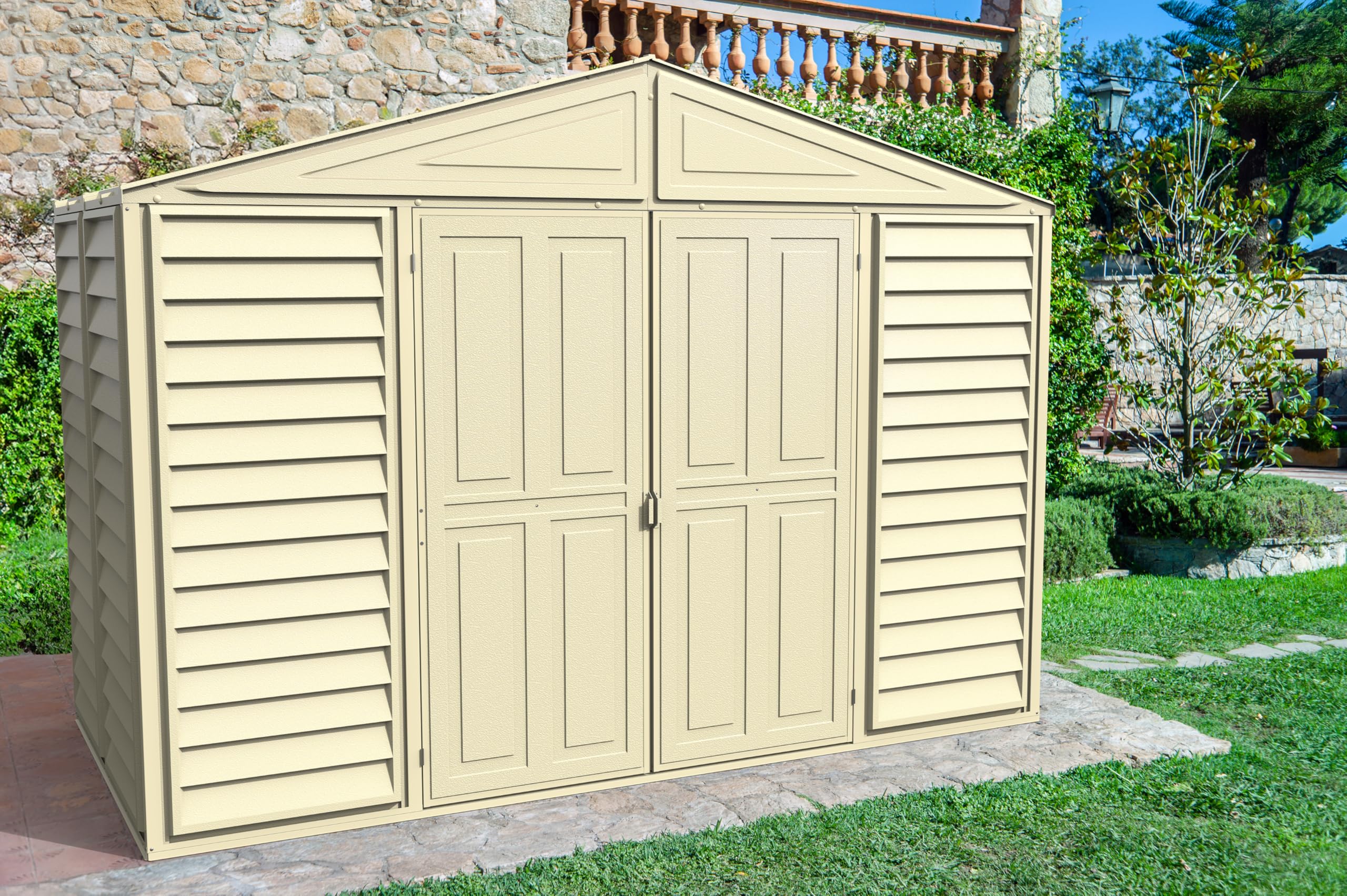 - Abri de jardin en vinyle/ plastique durable et facile à entretenir qui ne rouille pas, ne pourrit pas et ne se cabosse pas.