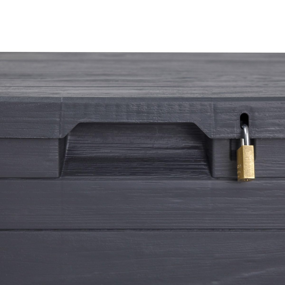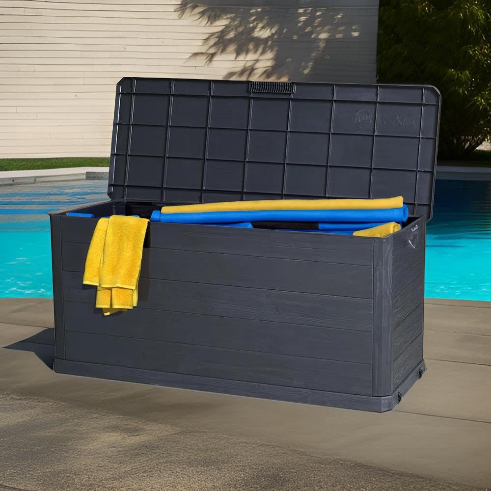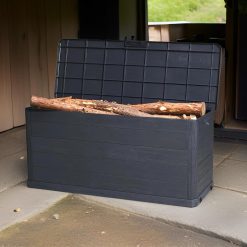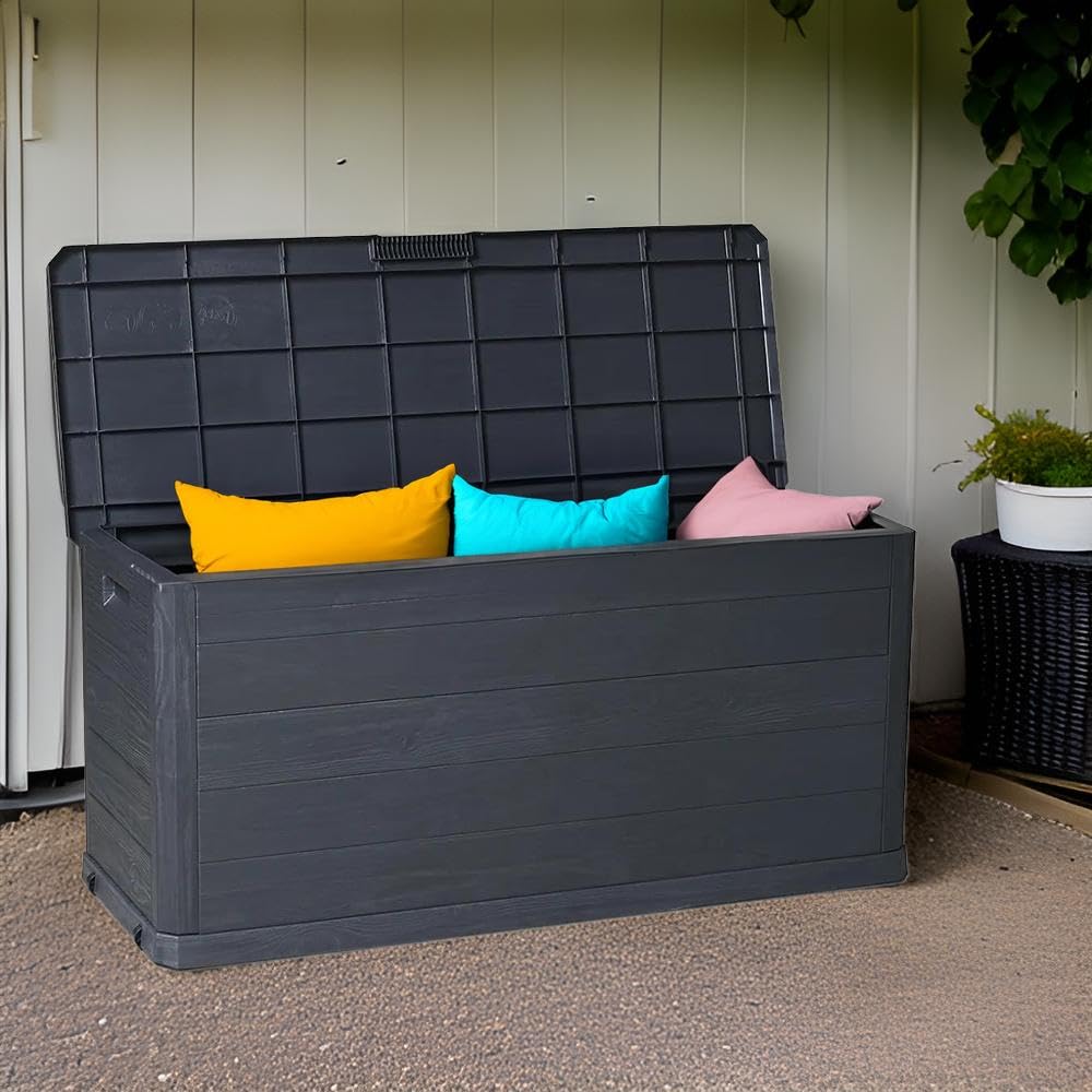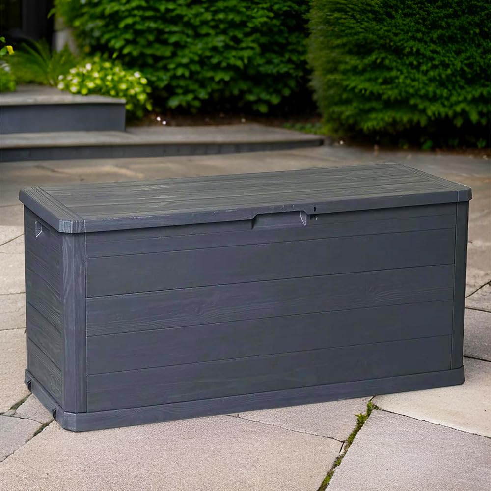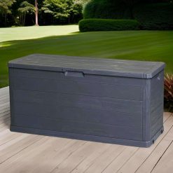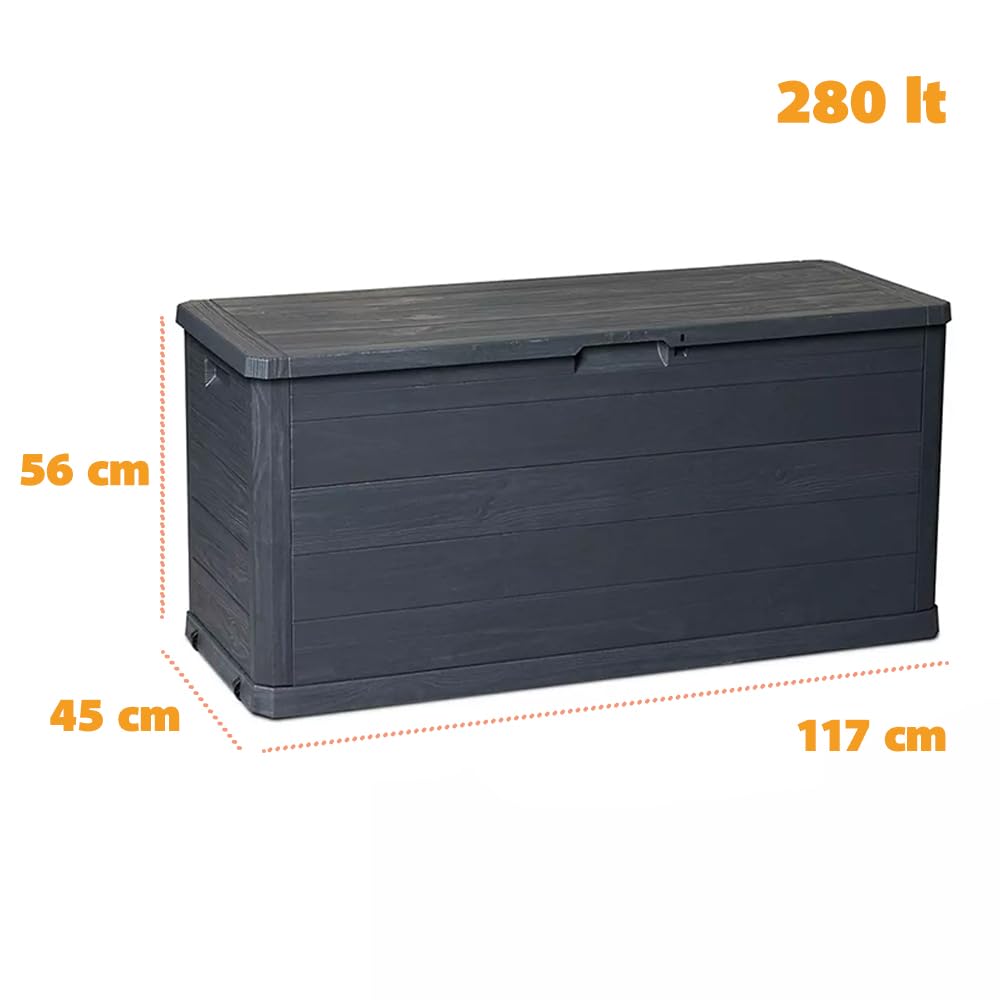 MA MAISON Coffre 280 Litres Récipient de stockage en résine effet bois Anthracite Dimensions 117x45x56h cm Extérieur Résistant aux UV