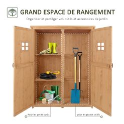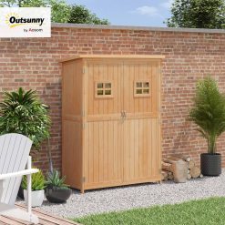 Outsunny Abri de Jardin en Bois Armoire de Jardin dim. 127,5L x 50l x 164H cm 2 étagères 2 Portes 2 fenêtres Toit bitumé étanche Bois Massif Sapin pré-huilé Bois Naturel