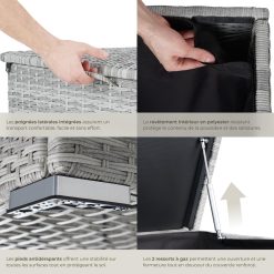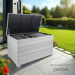 - L’ÉLÉGANCE RENCONTRE LA FONCTIONNALITÉ : Plus qu’un simple meuble de rangement, ce coffre de rangement exterieur embellit votre jardin, balcon ou terrasse avec son design moderne en résine tressée. Il intègre harmonieusement avec vos meubles de jardin extérieur, offrant une solution esthétique pour le rangement des outils, coussins, ou même des matelas d’appoint. Son allure sophistiquée en fait un véritable atout déco, tout en répondant à vos besoins de rangement exterieur.