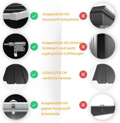 - 【Porte Verrouillable pour Sécurité Totale】Équipé d’une serrure solide et d’un verrou, ce abri de jardin extérieur sécurise vos objets contre le vol ou les animaux. La porte robuste s’ouvre et se ferme facilement pour un accès rapide.