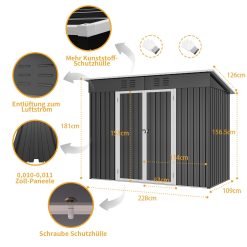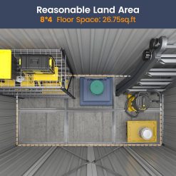 - 【Espace de Stockage Spacieux & Polyvalent】Abri de jardin métal de dimensions 246x121x181 cm(L x l x H), idéal pour ranger outils de jardin, vélos, ou même servir de cabane de jardin extérieur pour animaux. Son grand volume en fait un cabanon jardin extérieur pratique pour cacher les poubelles ou stocker du matériel encombrant.